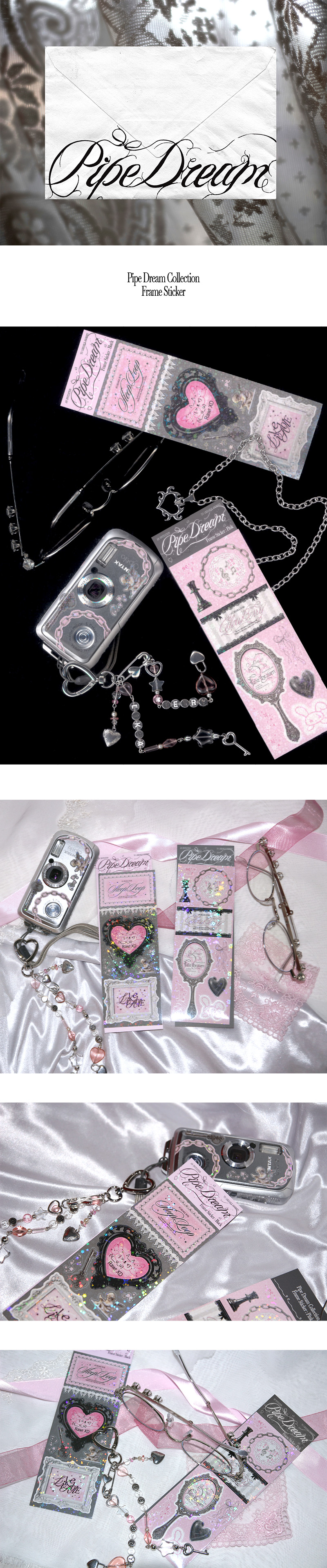 Size : 58 x 160 mmMaterial : Paper-로맨틱하고 귀여운 무드의 그래픽이 담긴 프레임 스티커입니다. 사진 위에 프레임 모양을 붙여서 꾸밀 수도, 그 안에 남은 스티커를 그래픽으로 쓸 수도 있는 활용도 높은 제품입니다.